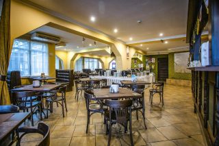 В летний сезон в пансионате организуется трехразовое питание по системе «Все включено». Также в пансионате работает кафе и два бара.